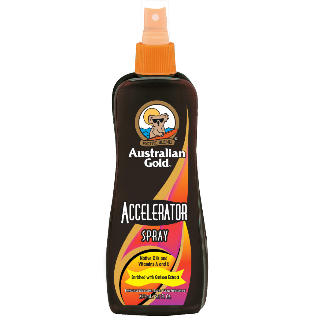 Australian Gold’s bestselling Accelerator now as a Spray, the #1 Indoor Tanning Lotion worldwide! A great lotion to use as a base builder, but also ideal for tan maintenance. This exotic blend is a super tanning formula, which helps your natural pigmentation process to tan as fast as nature allows.