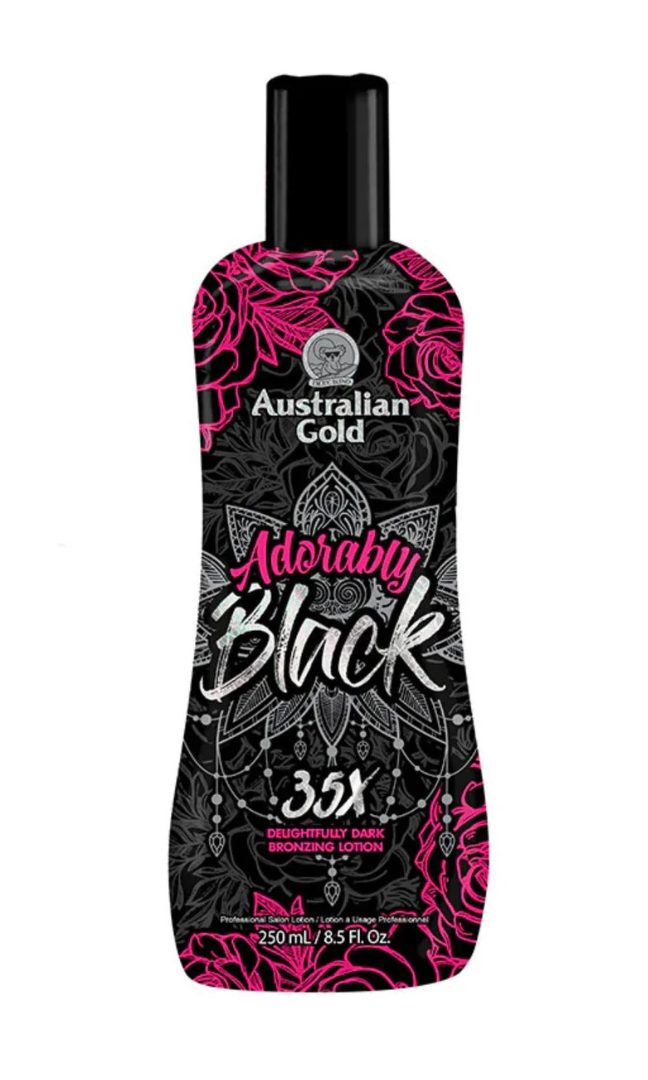 Enchant and entice with desirable colour from Australian Gold Adorably Black™! This 35X Delightfully Dark Bronzer blends DHA flawlessly with Natural Bronzers for immediate and delayed stunning dark results. Energizing Beet & Berry Smoothie infuses skin with powerful antioxidants that help nourish and moisturize for a more youthful complexion. Lavish your color with Hemp Seed Oil and Selfish Skin Softener to leave your skin irresistibly smooth, with a velvety after-feel that is sure to captivate. The gorgeous results will leave you totes adorbs!