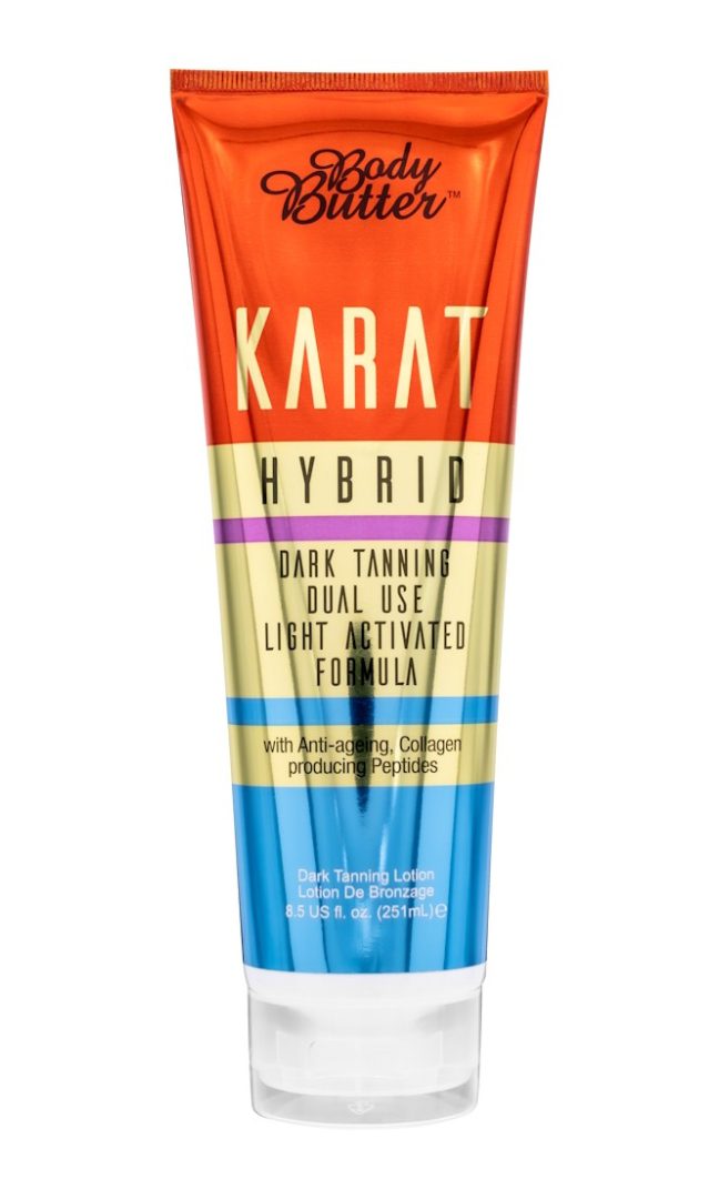 Step beyond ordinary tanning with Body Butter Karat Hybrid, a revolutionary dual-use, light-activated tanning lotion created for discerning tanners who demand deeper colour, firmer skin, and long-lasting results. Designed to work seamlessly with UV tanning and light therapy, this advanced formula enhances light penetration while delivering powerful skin-care benefits for a dark, toned, rejuvenated appearance.