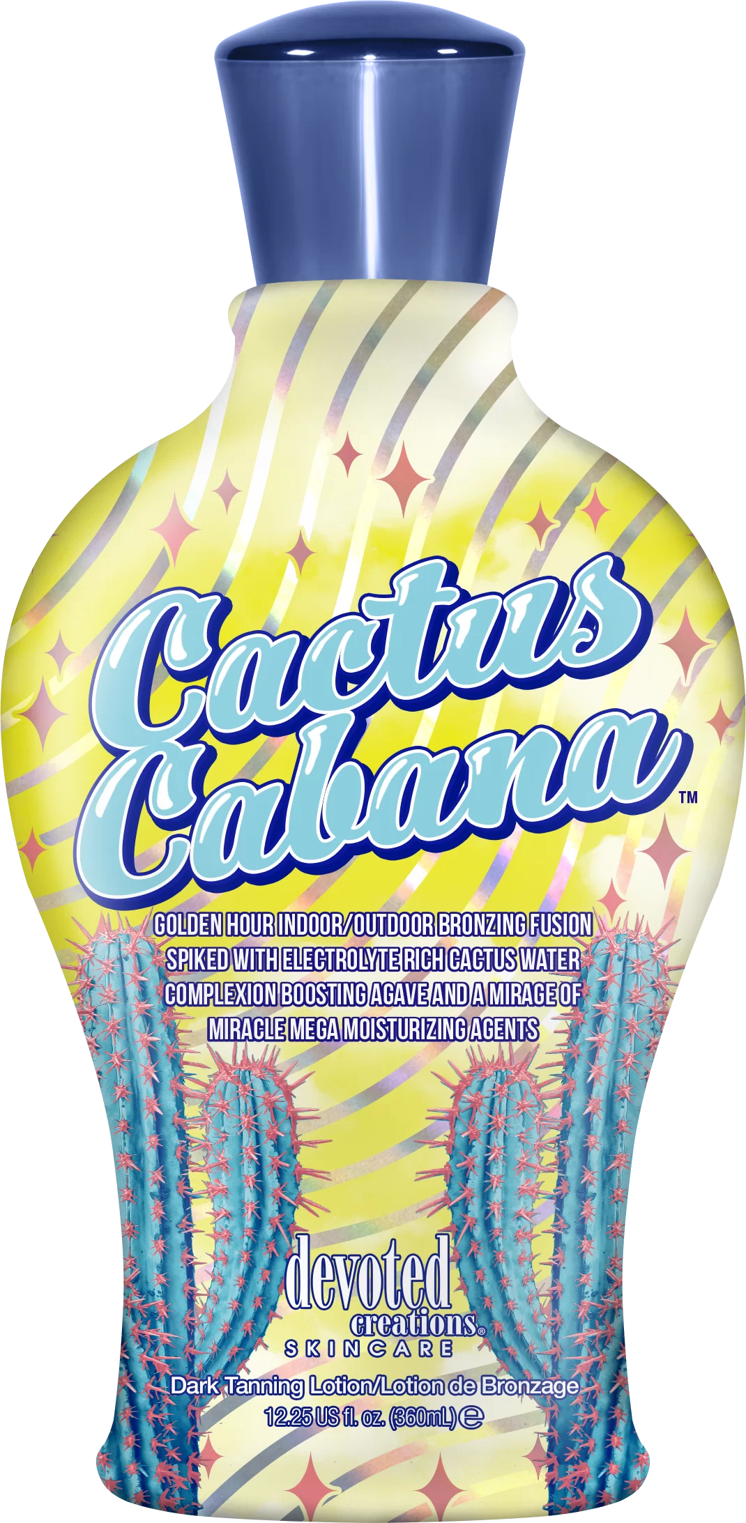Kick back, relax and retreat to the desert dunes of color with Cactus Cabana™! This bronzing bungalow is loaded with streak-free/stain-free, indoor and outdoor bronzers for fast results anywhere you are scoring some sunshine. An oasis of skin perfecting additives, lush complexion boosters, and a mirage of mega moisturizers allow Cactus Cabana™ to guide you on the path to perfectly scenic skin from sunrise to sundown. If you wanderlust golden bronze color, reserve your results with Cactus Cabana™