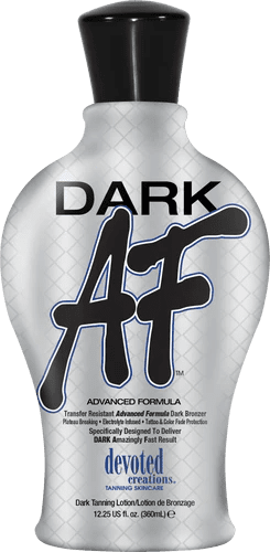 If your color isn’t cutting it…It’s time to get Dark AF™! This Advanced Formula utilizes high amounts of bronzers to deliver daringly dark color! This white lotion will ensure transfer resistant results, so the only place that will be getting Dark AF™, is your skin and not your clothes! Loaded with powerful electrolytes, tattoo and color fade protectors as well as skin tightening and toning benefits your skin is sure to be left smooth, soft and supple. Added plateau breakers and antiorange technology will ensure super quick color coupled with lust worthy long lasting results! What are you waiting for? Isn’t it time you get Dark AF™?