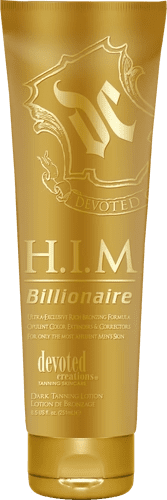 HIM Billionaire⢠is formulated exclusively for the Man who demands excellence! This generously loaded bronzing blend utilizes opulent amounts of Natural and DHA bronzers to allow for superior dark results at an accelerated speed. This exquisite blend is overflowing with complexion perfecting, toning, wrinkle reducing and color correcting agents so you are left with the sought after, envy worthy skin only some can dream of. If what you seek is prosperous results that are rich and rare, then look no further than HIM Billionaire