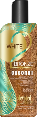 If you are craving a taste of the tropics then your skin needs White 2 Bronze Coconut™ , the vacation in a bottle! This intoxicating bronzing crème will drench the skin just from the beach dark color while added Coconut water, Coconut Oils & Extracts smooth, soften, hydrate and quench even the driest skin. If what you desire is darkness, then no vacation needed… White 2 Bronze Coconut™ will be your passport to paradise!
