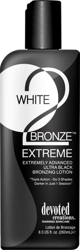 With White 2 Bronze Extreme™ you will experience darkness like never before. Formulated with more accelerators, darker DHA and natural bronzers will allow you to go 3 shades darker – instantly! Added hemp seed oil will keep the skin hydrated, while ALA technology™ and acai berry will fight free radical damage and the appearance of fine lines and wrinkles. The amazing tapioca starch blend will soften and condition the skin as the soft & sweet fragrance appeals to all tanners.