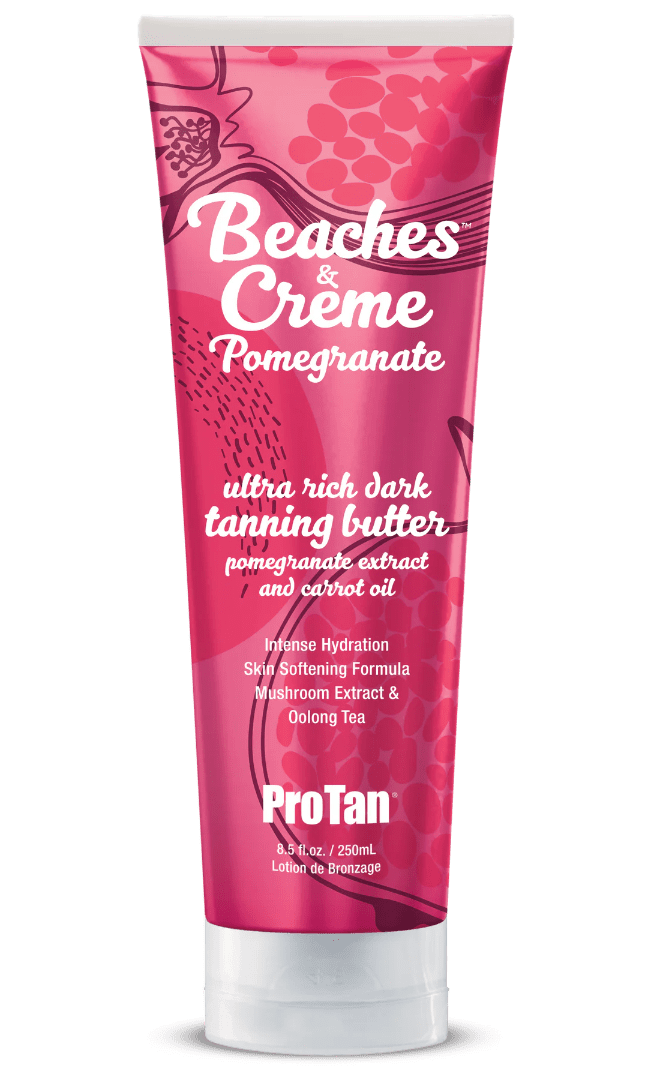 Deeply moisturise and nourish skin while achieving your desired tanning results with this creamy, rich body butter. Beaches & Crème Pomegranate Ultra Rich Dark Tanning Butter is enriched with Pomegranate Extract and Carrot Root Oil, a powerful tonic that helps give skin a revitalized, healthy glow. Antioxidant rich Oolong Tea and skin conditioning Shea Butter and Mushroom Extract help to provide maximum skin hydration, feel the difference.