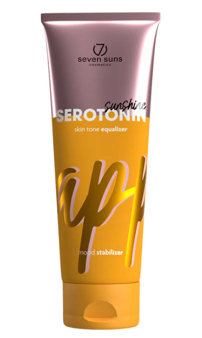 Seven Suns Serotonin Sunshine Tanning Accelerator is a neurocosmetic tanning gel designed to enhance your tan while supporting your mood and skin health. As part of the “Happiness Hormones” series, it stimulates serotonin production in the skin, delivering a feel-good tanning experience and a radiant, illuminated complexion. Golden shimmer particles offer an instant glow, making it a favourite among both individuals and trade customers looking for something a little extra.